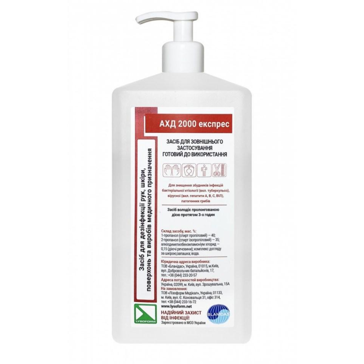 Дезінфікуючий засіб для гігієнічної та хірургічної обробки рук і шкіри, а також для швидкої дезінфекції невеликих поверхонь, некритичних медичних виробів.