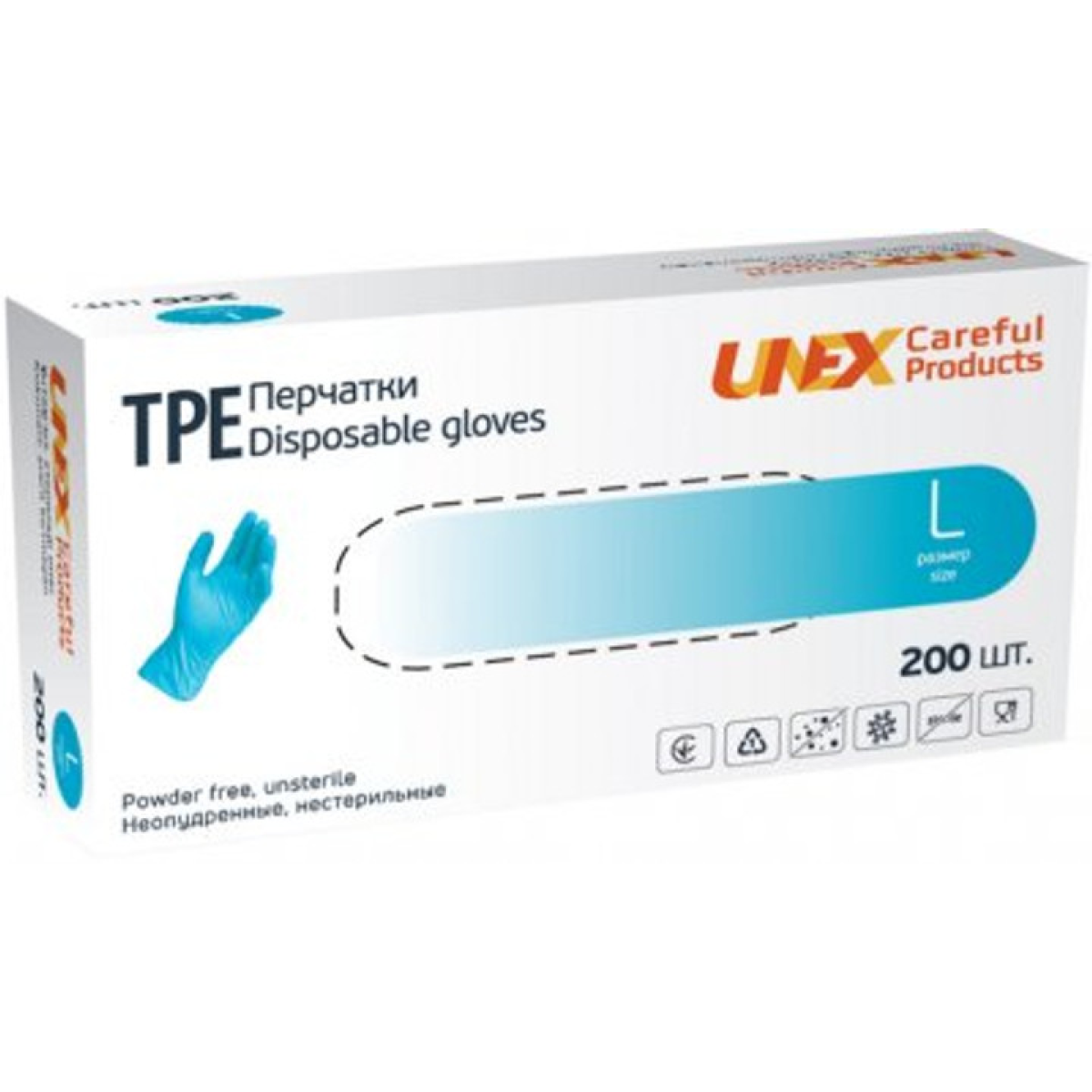 Рукавички одноразові ТРЕ Unex неопудрені сині – новинка на ринку витратних матеріалів. Головна сировина для виготовлення — це термопластичний еластомер, який є хімічно стійким, міцним та демонструє хорошу стабільність розмірів.