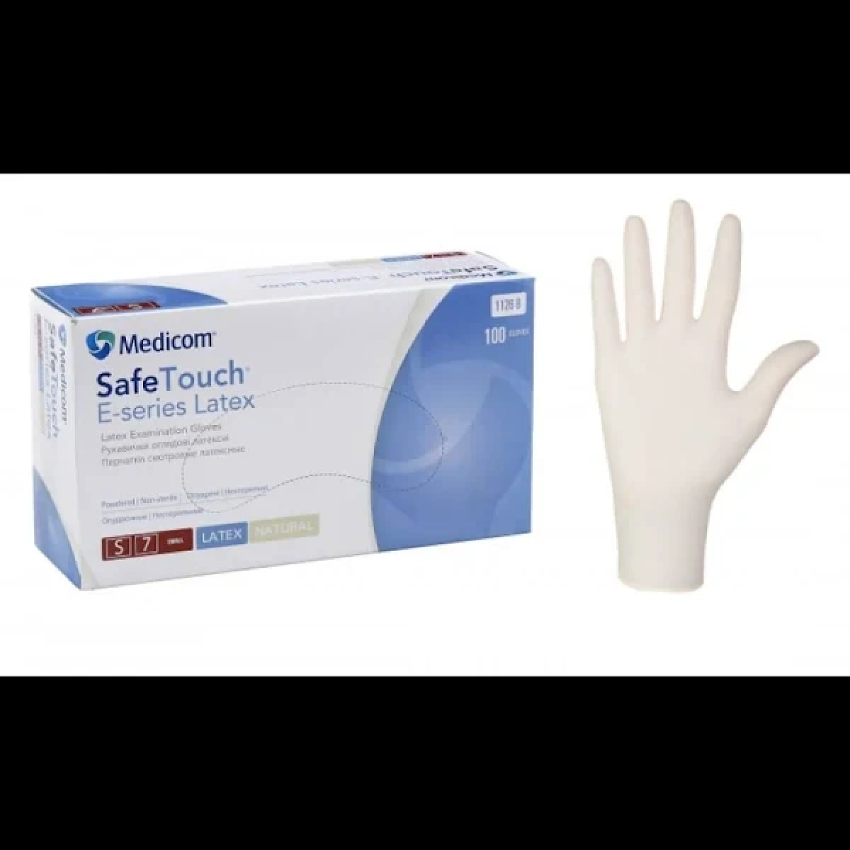 • Рукавички медичні латексні, опудрені, Білі (100 шт/уп) Medicom S