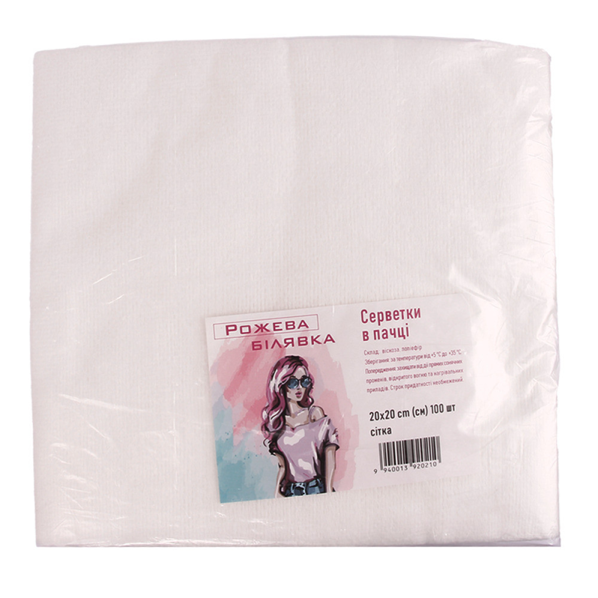 • Серветки в пачці Рожева Білявка 20х20 см 100 шт/пач зі спанлейсу сітка